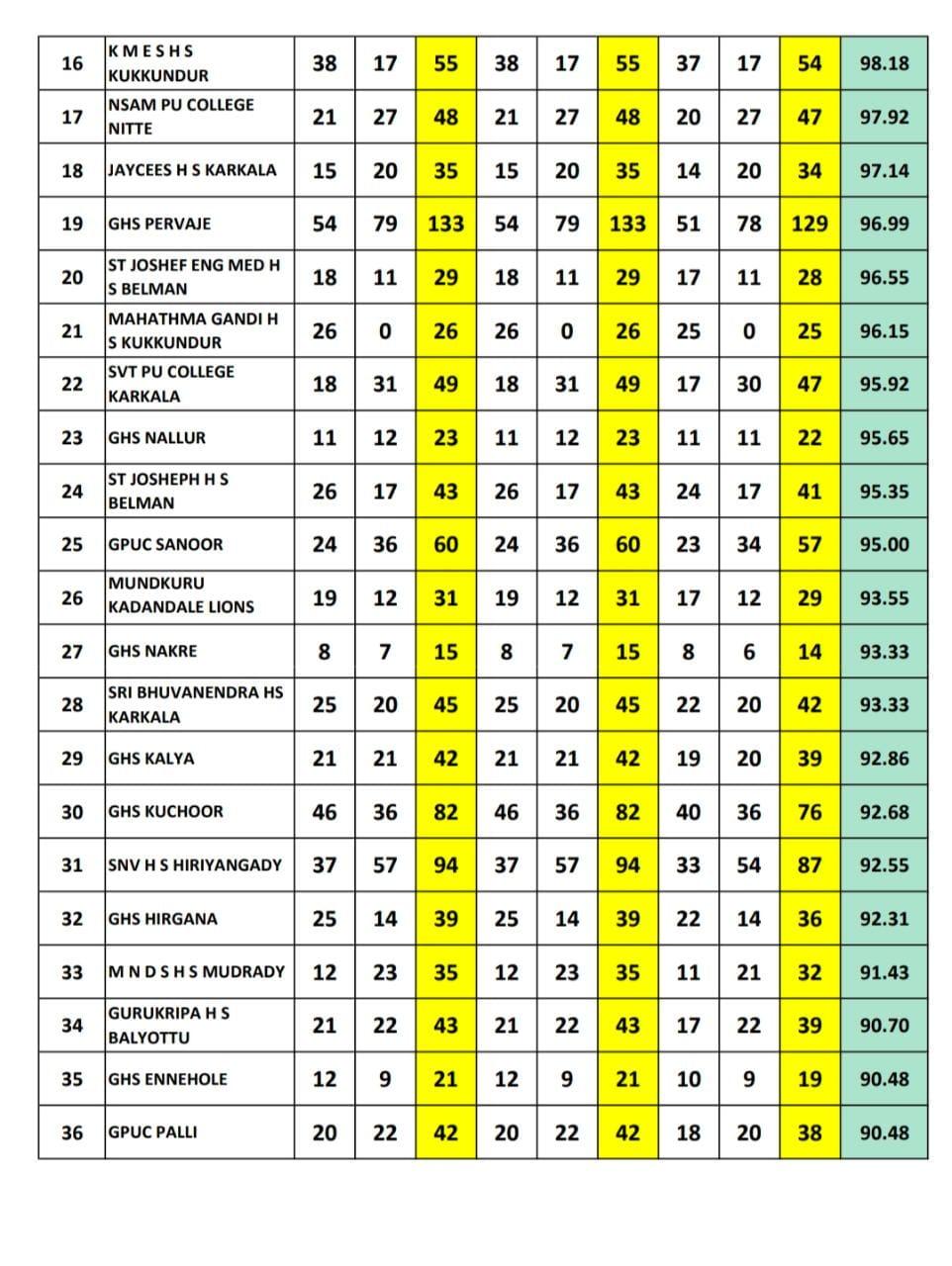 ಕಾರ್ಕಳ: ಕಾರ್ಕಳ ತಾಲೂಕು ಎಸ್ ಎಸ್ ಎಲ್ಸಿ ಪರೀಕ್ಷೆಯಲ್ಲಿ 89.59 ℅ ಗಳಿಸುವ ಮೂಲಕ ರಾಜ್ಯದ ಗಮನ ಸೆಳೆದಿದೆ. ಅವಿಬಾಜಿತ ಹೆಬ್ರಿ ಕಾರ್ಕಳ ತಾಲೂಕುಗಳ 15 ಪ್ರೌಢ ಶಾಲೆಗಳು ನೂರು ಶೇಖಡ ಫಲಿತಾಂಶ ದಾಖಲಿಸಿವೆ . ಎಸ್ ಎನ್ ವಿ ಪ್ರೌಢಶಾಲೆ ಯ ಯ ಮೇಹಾ , ಕ್ರೆಸ್ಟ್ ಕಿಂಗ್ ಶಾಲೆಯ ಅನನ್ಯ , ಪೆರುವಾಜೆ ಹೈಸ್ಕೂಲಿನ 624 ಅಂಕಗಳಿಸುವ ಮೂಲಕ ರಾಜ್ಯದಲ್ಲಿ ದ್ವಿತೀಯ ಸ್ಥಾನ ಗಳಿಸಿದ್ದಾರೆ.ಜೊತೆಗೆ ತಾಲೂಕಿನಲ್ಲಿ ಮೊದಲ ಸ್ಥಾನ ಗಳಿಸಿದ್ದಾರೆ
