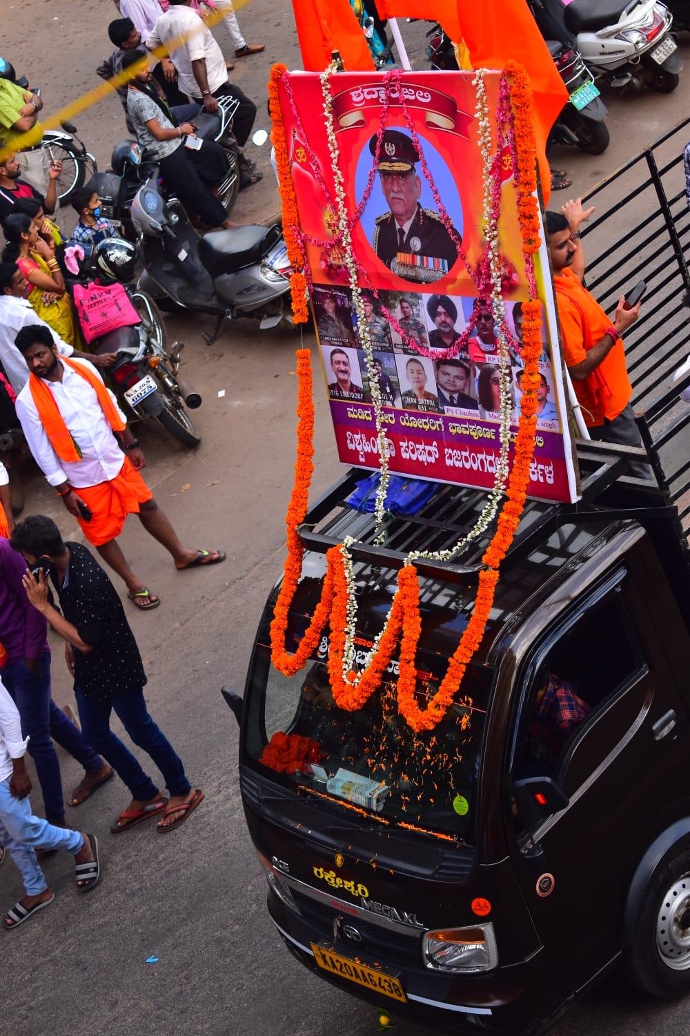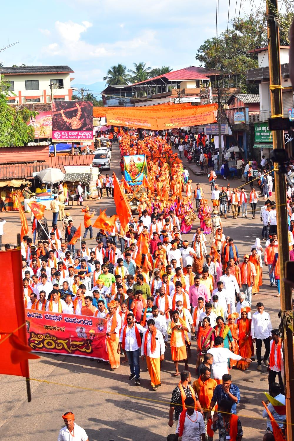 ಮನಸೆಳೆದ ವೈಭವದ ಶೋಭಯಾತ್ರೆ : ಕೇಸರಿ ಮಯಗೊಂಡ ಕಾರ್ಕಳ ಪೇಟೆಯ ಮುಖ್ಯ ರಸ್ತೆ ಯಲ್ಲಿ, ಯುವಕರು ಕೇಸರಿ ಶಾಲು , ಮಹಿಳೆಯರು ಕೇಸರಿ ಪೇಟ ತೊಟ್ಟು ಮೆರವಣಿಗೆ ಯಲ್ಲಿ ಸಾಗಿದರು , ಕಾರ್ಕಳ ಸ್ವರಾಜ್ಯ ಮೈದಾನದಿಂದ ಗಾಂಧಿ ಮೈದಾನದ ವರೆಗೆ ವೈಭವದ ಶೊಭಯಾತ್ರೆ ಯಲ್ಲಿ ಹೆಲಿಕಾಪ್ಟರ್ ದುರಂತದಲ್ಲಿ ಮಡಿದ ಬಿಪಿನ್ ರಾವತ್ ಹಾಗೂ ವೀರ ಸೇನಾನಿ ಗಳಿಗೆ ಶ್ರದ್ದಾಂಜಲಿ ಸಲ್ಲಿಸುವ ಸ್ಸ್ತಬ್ಧ ಚಿತ್ರ, ಧ್ಯಾನ ನಿರತ ಶಿವ , ಹನುಮಂತ ಮೂರ್ತಿ ,ದತ್ತ ಮೂರ್ತಿ, ಹೆಬ್ರಿ ಕಾರ್ಕಳ ತಾಲೂಕಿನ ಐವತ್ತಕ್ಕೂ ಹೆಚ್ಚು ಭಜನಾ ತಂಡಗಳು,ನಾಸಿಕ್ ಬ್ಯಾಂಡ್ ಗಳು ಶೋಭಯಾತ್ರೆಯುದ್ದಕ್ಕೂ ಮೆರವಣಿಗೆಯಲ್ಲಿ ಸಾಗಿದವು. ಸೂರ್ಯ ಪುರೋಹಿತ್ ಹನುಮಂತ ಚಿತ್ರಬಿಡಿಸಿದರು ಜಗದೀಶ್ ಪುತ್ತೂರು ಸಂಗೀತ ಕಾರ್ಯಕ್ರಮ ನಹೇಳಿದರು