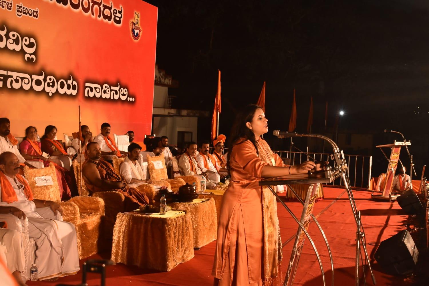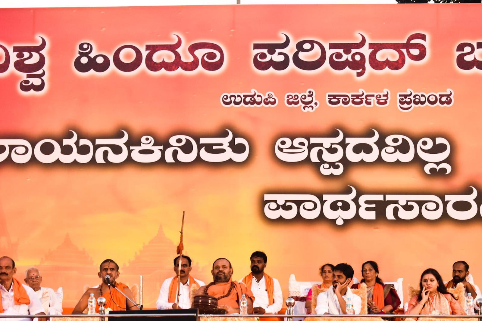ಆನೆಗೊಂದಿ ಮಠದ ಕಾಳಹಸ್ತೆಂದ್ರ ಸ್ವಾಮೀಜಿ ಮಾತನಾಡಿ ದೇಶದಲ್ಲಿ ಸಂತರು ಶಾಂತಿ ಯನ್ನು ಹಂಚಿದವರು, ಆದರೆ ದೇಶದೊಳಗಿನ ದುಷ್ಟ ಶಕ್ತಿ ಗಳೆ, ಮತಾಂತರ ಭಯೋತ್ಪಾದನೆ ಹುಟ್ಟಿಸುತಿದ್ದಾರೆ.ಧರ್ಮಾಧರಿತ ಕಾನೂನನ್ನು ಕಿತ್ತೊಗೆದು ,ಸಮಾನ ಕಾನೂನು ಸಂಹಿತೆ ಜಾರಿಗೆ ತರಬೇಕು