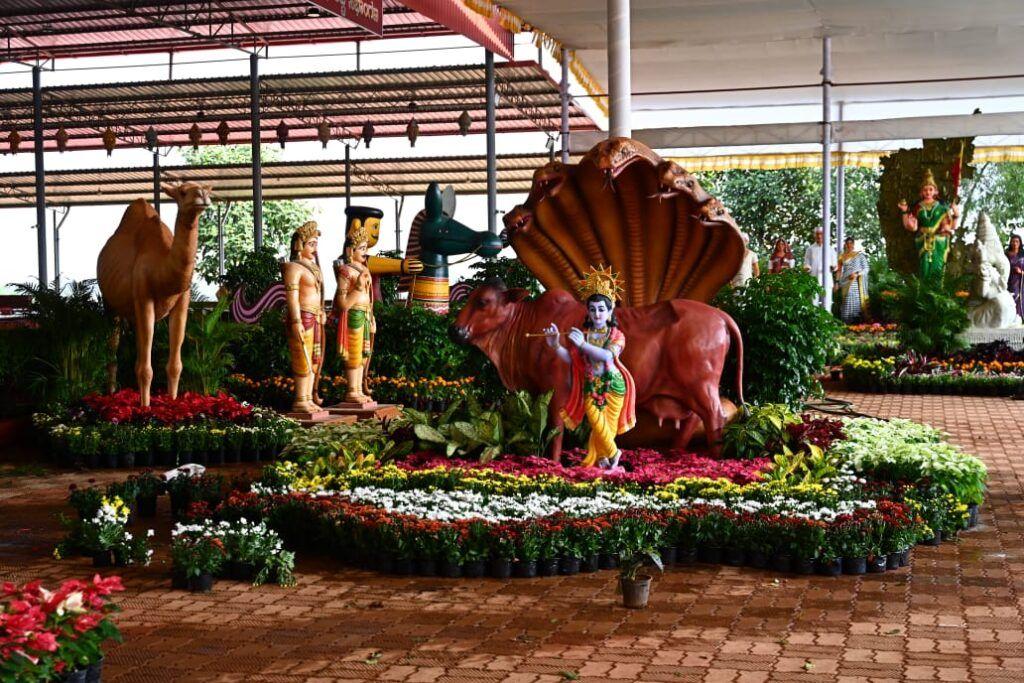 ಫಲಪುಷ್ಪ ಮೇಳ: ನಮ್ಮ ನೆಲದ ಚೆಂಡು, ಮಲ್ಲಿಗೆ ಮತ್ತಿತರ ಹೂಗಳ ಜೊತೆ ಹೂ ಗಿಡಗಳಾದ ಪಾಯಿಂಸೆಟ್ಟಿ, ಪೆಟುನಿಯಾ, ಸಾಲ್ವಿಯಾ, ಆಗ್ಲೋನಿನ, ಫಿಲಿಡೊಡ್ರನ್, ಟೊರ್ನಿಯ, ಕಲೆನಚೋ ವಿವಿಧ ಬಗೆಯ ಸಮಗ್ರ ಫಲ ಪುಷ್ಪ ಪ್ರದರ್ಶನ ಮೇಳೈಸಲಿವೆೆ. ಸದಾಪುಷ್ಪ, ಸೇವಂತಿಗೆ, ಜೀನ್ಯ, ಗೌರಿ, ಡಾಲಿ, ಲಿಲ್ಲಿ, ಕೆಪುಳ, ಸಿಲ್ವರ್ ಡಸ್ಟ್ ಲವೆಂಡಾರ್, ಅನೆಸೊಪ್ಪು, ಅಂತೋರಿಯಮ್, ಮಲ್ಲಿಗೆ, ಸಲ್ವಿಯ ಸ್ಪ್ಲೆಂಡನ್ಸ್, ಸೆಲೋಶಿಯ, ಚೈನೀಸ್ ಫ್ರಿಂಜ್, ವೀಪಿಂಗ್ ಫಿಗ್, ವಿಶ್ಬೋನ್ ಸೇರಿದಂತೆ ನಂದನವನವೇ ಧರೆಗಿಳಿದಂತೆ ಭಾಸವಾಗುತ್ತಿವೆ.ಇನ್ನು ಪುಷ್ಪಗಳಿಂದ ರಚಿಸಿದ ಆನೆ, ಕುದುರೆ, ಜಿರಾಫೆ, ನವಿಲು ಇತ್ಯಾದಿ ಕಲಾಕೃತಿಗಳಿವೆ.